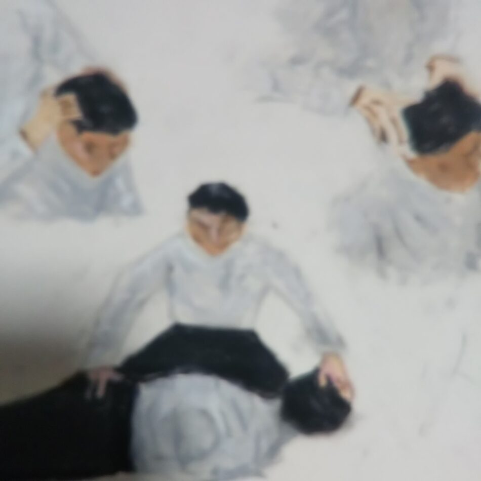 仰向けに寝ている相手の頭上に座り、四指を前頭部に起き親指を重ねたまま愉氣します。