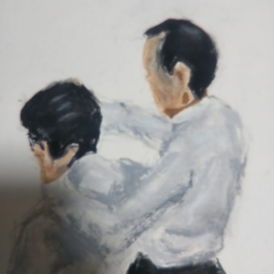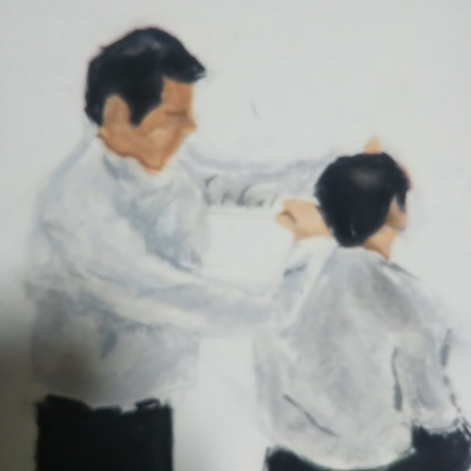 そのまま両手を対応させ愉氣します(真ん中の絵)。